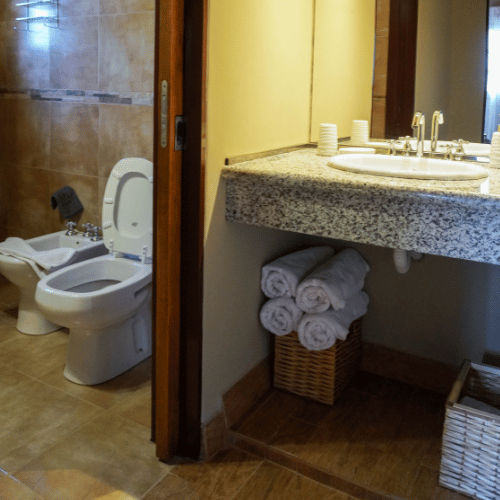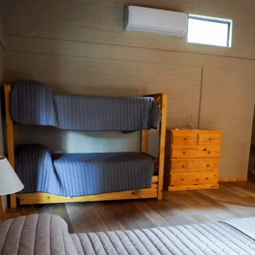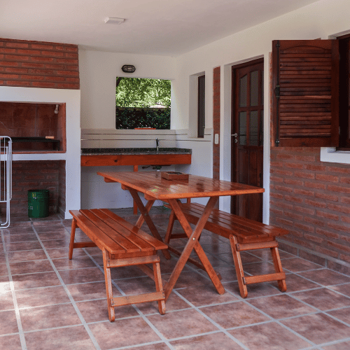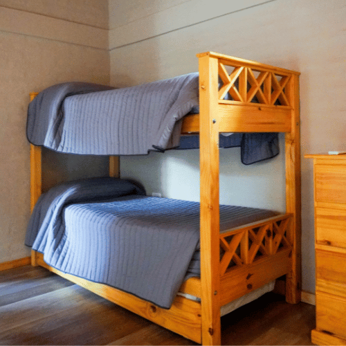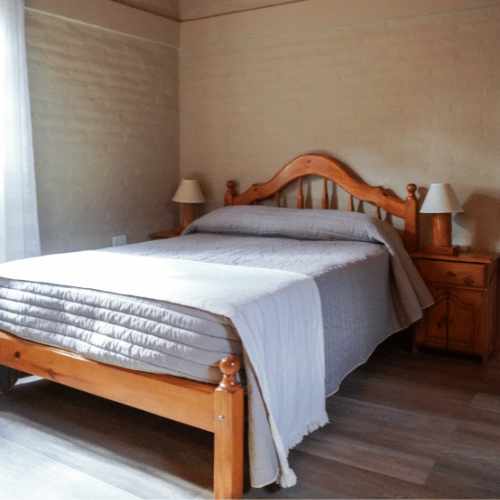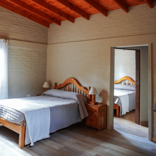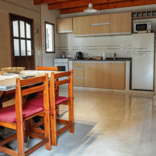 Cabañas 4 y 5 de tipo dúplex. Cuentan con cocina comedor, baño de servicio, en la parte superior los dos dormitorios, ante-baño y baño principal.